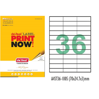Desmat A4 Size Labels (36 Label Sheet, ST36)- 100 Sheets - Paper Labels - Desmat - Swas Stationery