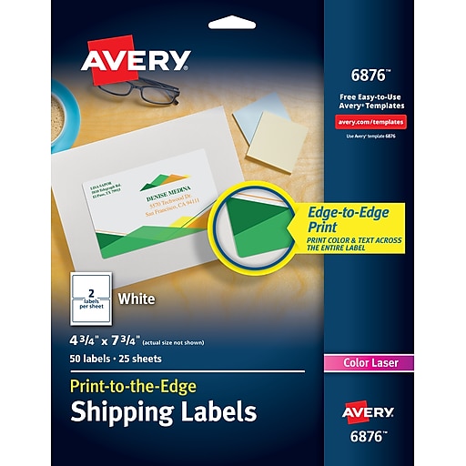 Avery Print-to-the-Edge Laser Shipping Labels, 1 1/4" x 3 3/4", White, 12 Labels/Sheet, 25 Sheets/Pack (6879)