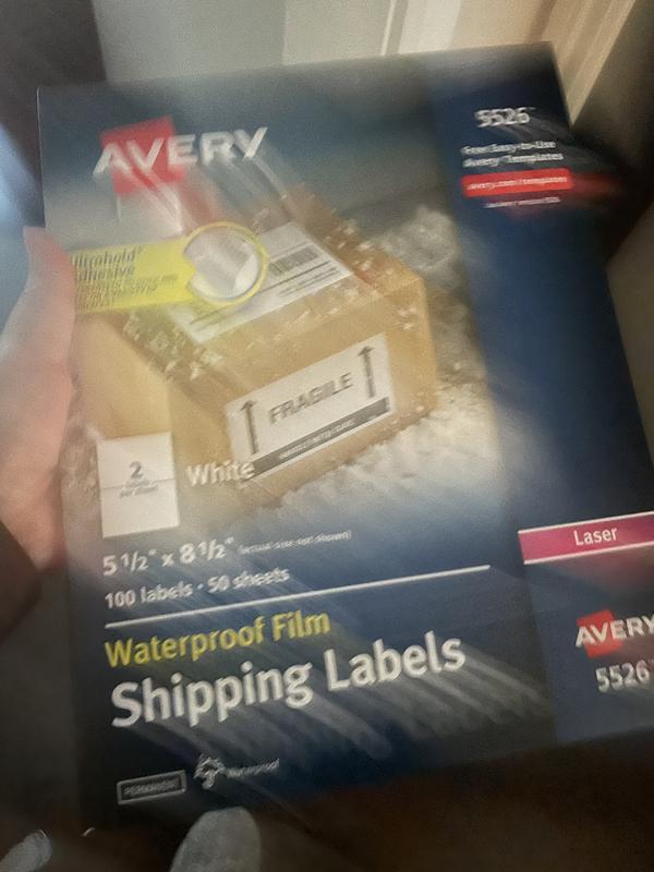 Avery Waterproof Shipping Labels with Ultrahold Permanent ... Avery Waterproof Shipping Labels with Ultrahold Permanent Adhesive, 5-1/2" x 8-1/2", 20 Labels for Laser Printers (15516) · More seller options (12) · About this ...